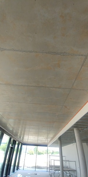 Die Schalung einer Sichtbetondecke ist während der Bauphase extremen Beanspruchungen ausgesetzt.