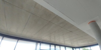 Die Schalung einer Sichtbetondecke ist während der Bauphase extremen Beanspruchungen ausgesetzt.